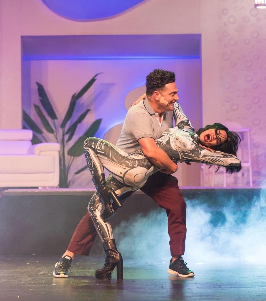 Con Mijail Mulkay en “Mi robot sexual”, una obra de Alexis Valdés.