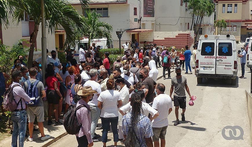 La entrada a urgencias, en la intersección de las calles 27 de noviembre (Jovellar) y Ronda, está repleta de gente: estudiantes de la Universidad de La Habana, trabajadores de zonas cercanas, vecinos… Todos dispuestos a donar sangre, socorrer a los heridos, apoyar a los familiares.