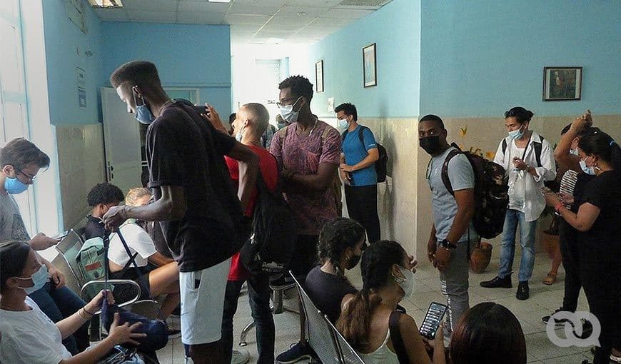En el área de espera de los voluntarios, en el primer nivel de la edificación, siguen concentrándose personas. Un médico explica los criterios de exclusión. Unos pocos se marchan. Más tarde se conocería que, por la afluencia de personas en este y otros puntos, se alcanzaría el máximo posible de extracción diaria en estas instituciones.