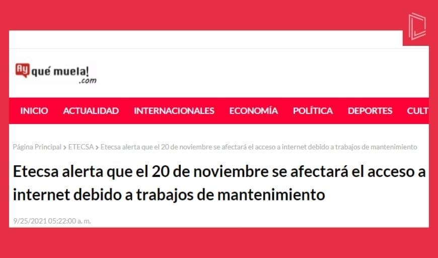 Aunque la noticia resulta verosímil sobre la base de lo acontecido tras las protestas del 11 de julio de 2021, cuando el Gobierno cortó el servicio de Internet por datos durante varios días en la isla, hasta este momento Etecsa no ha anunciado acciones de mantenimiento para el mes de noviembre. La fecha referida por el medio digital —el 20 de noviembre— coincide con el día en el que han sido convocadas manifestaciones pacíficas por parte de la plataforma social Archipiélago.