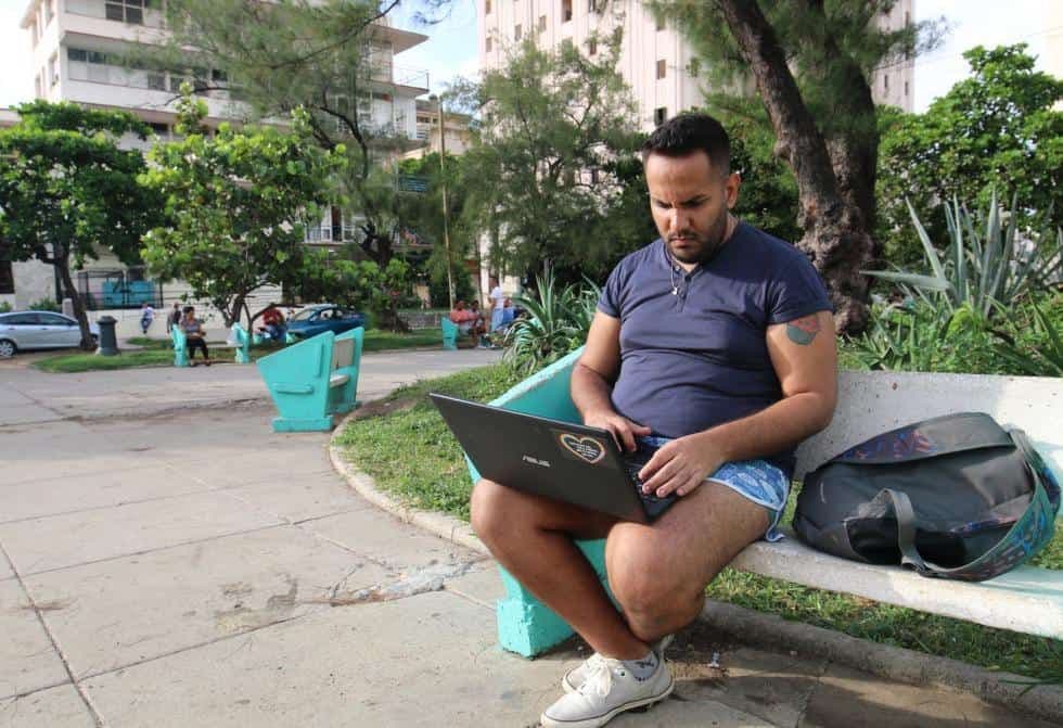 “Vengo a este lugar porque es tranquilo. La conexión, la mejor de la Habana. La mayoría de las veces los chicos con los que hablo están aquí mismo, sentados en este parque, están pa´ lo mismo que yo”, explica.