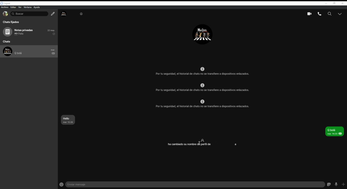 Quizá una de las pocas debilidades de Signal es que, al igual que WhatsApp, funciona a través de los contactos guardados en el teléfono y siempre muestra en pantalla el nombre del contacto. Wickr Me no lo hace.