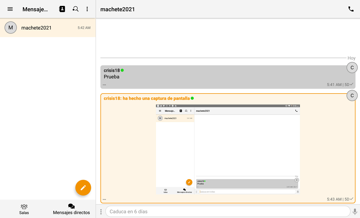 Wickr Me, lo mismo que Signal, no genera carpetas para guardar sin cifrado los contenidos multimedia enviados y recibidos, y cuenta con un apartado de “sin censura”. Permite desactivar los borradores y cada mensaje viaja encriptado. Por defecto, se necesita un toque para hacerlos legibles, aunque en los ajustes puede configurarse que sea automático.