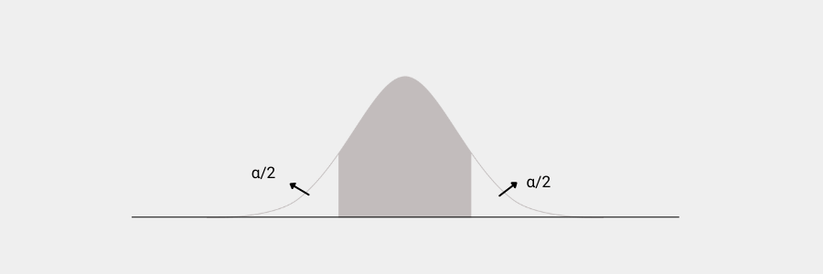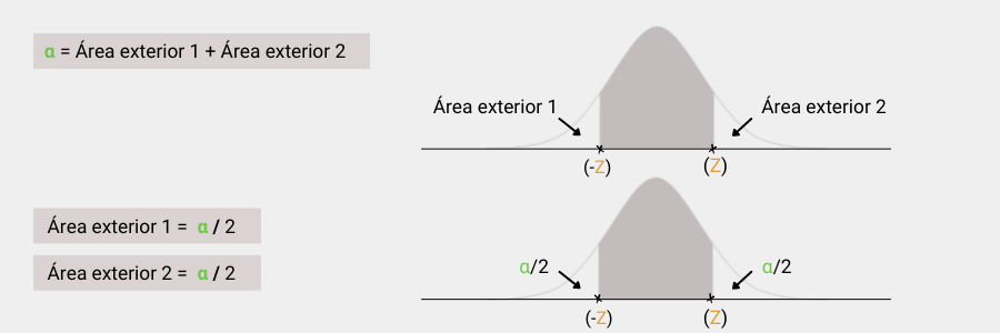 Una vez calculado el valor de α debemos localizar el valor de Z que corresponde al valor de α/2. Nota que α se divide entre dos porque los puntos Z están a la misma distancia del centro del gráfico y, por tanto, dejan fuera de sí iguales valores de α.