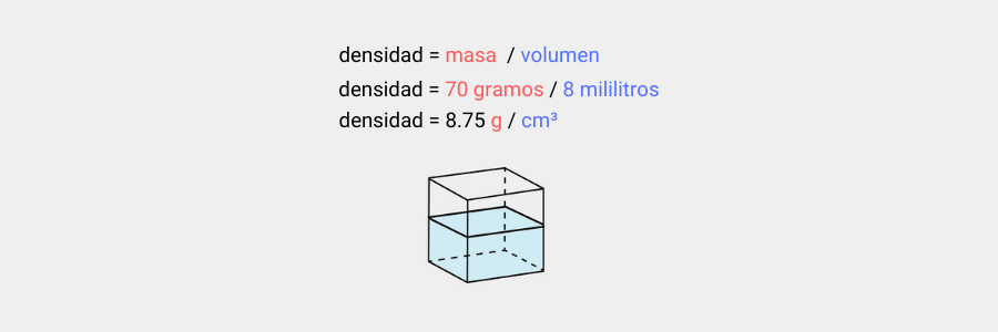 Para ello, necesitamos medir la masa del objeto con la ayuda de una báscula. Si es un objeto de dimensiones pequeñas, te recomendamos utilizar el gramo como unidad de medida. El cálculo del volumen podemos hacerlo basado en el principio de Arquímides. Mediremos la cantidad de agua en un recipiente y luego calcularemos la cantidad que se desplaza al introducir el objeto. La cantidad de agua desplazada coincidirá con el volumen del objeto.