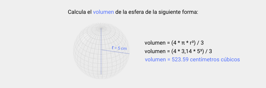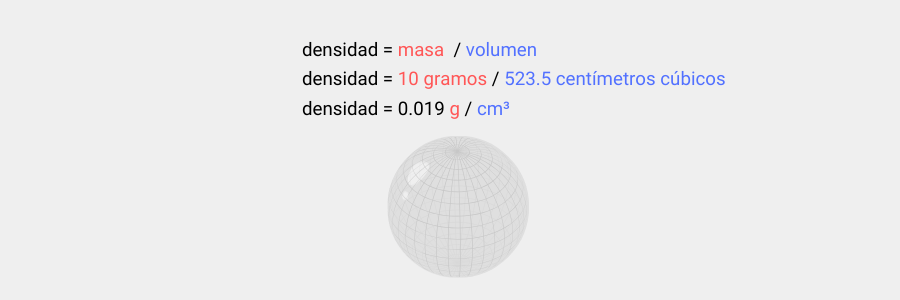 Para el cálculo de la densidad de una esfera realizamos el mismo procedimiento de ejemplos anteriores (ρ = m / V). Con la condición de que el volumen de la esfera se puede calcular de manera directa, pues conocemos su fórmula y no es compleja.