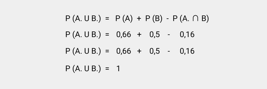Nota: Fíjate cómo el signo U indica probabilidad de A o B, mientras que el signo ∩ indica que se cumplen ambos, A y B.