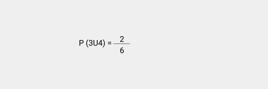 Si quisiéramos calcular qué probabilidad existe de que salga 3 o 4 podemos hacerlo realizando la misma fórmula. En este caso el evento continúa siendo de elementos equiprobables, pues solo puede salir uno de los dos en cada lanzamiento del dado y cada cara tiene la misma cantidad de probabilidades que el resto de resultar la ganadora.