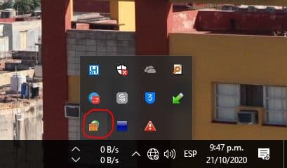 1.3- Abrimos la configuración de TinyWall. Para ello, vamos a los íconos ocultos en la Barra de Tareas y cliqueamos en el ícono del muro frente al globo terráqueo.
