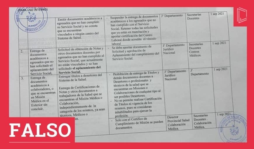 En los últimos meses han circulado varias desinformaciones sobre las regulaciones de viaje de los médicos cubanos. Primero, un supuesto documento oficial que indicaba que se regularía a todos los médicos, no solo a los especialistas, también a los recién graduados. Luego, audio anónimo que decía que todos los trabajadores de la primera línea de la salud serían regulados luego del 26 de noviembre. Ambas desmentidas por el Ministerio de Salud Pública (Minsap).