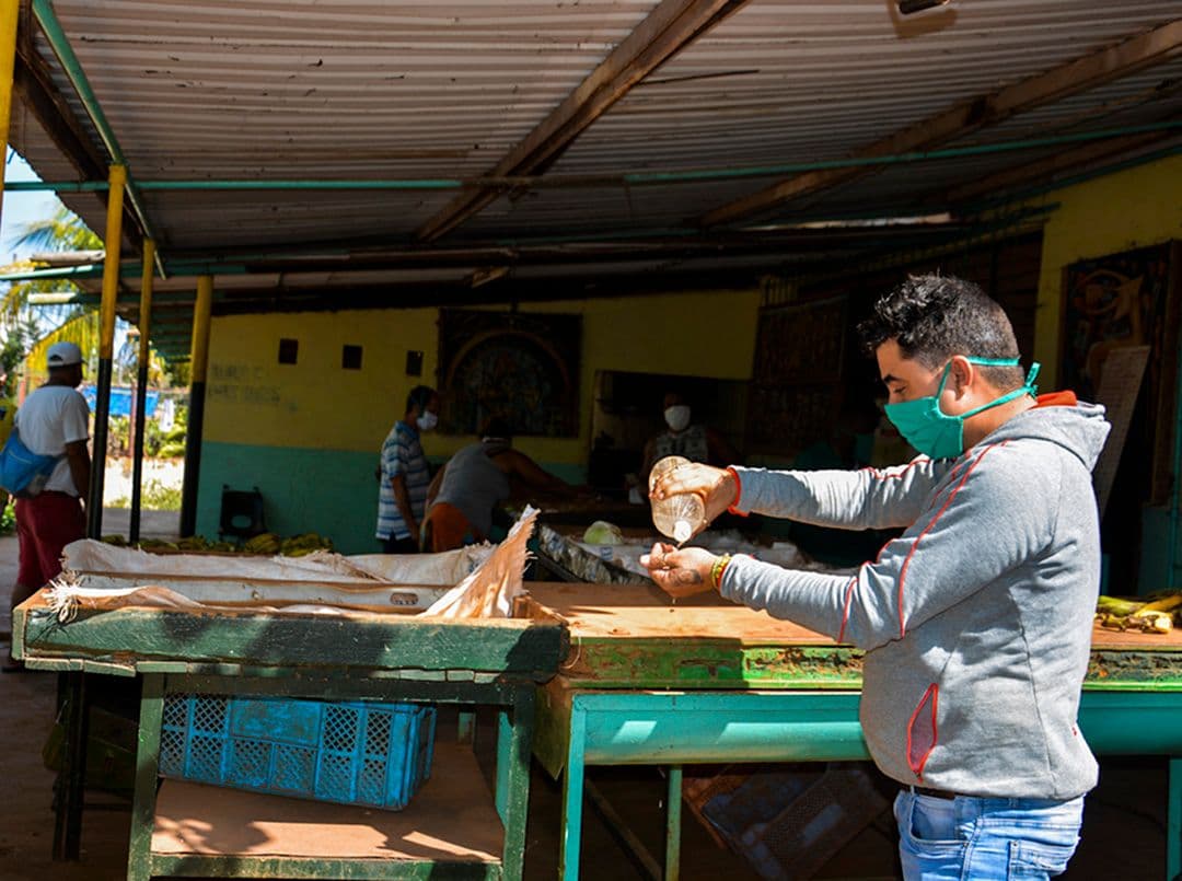 A un par de kilómetros de allí, en el barrio Cuabitas –actualmente con cuatro manzanas marcadas con cinta plástica amarilla y cerco de policías–, no todos los ventorrillos han permanecido cerrados en los últimos días, pero donde antes florecían a precios tensos el boniato, la col, el tomate, el plátano y la remolacha, ahora hay apenas anaqueles vacíos. Sobre el mostrador, en una esquina o una caja, venden los únicos productos en existencia: polvo de especias deshidratadas del tamaño de dosis personales, así como bolsitas y pomos plásticos de refrescos reenvasados con vinagres amarillentos y turbios.