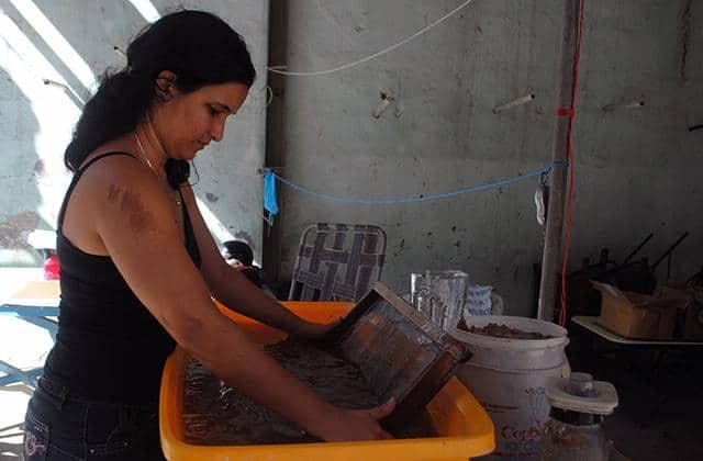 En su taller de papel reciclado en La Habana Vieja –el patio de su casa- Yuyú, que no es muy mediática, sabe que necesita una campaña de promoción bien fuerte, “porque las personas no tienen conciencia de la cantidad de papel que usan. Se compran una pizza, botan el papelito a la calle y nadie se da cuenta”.