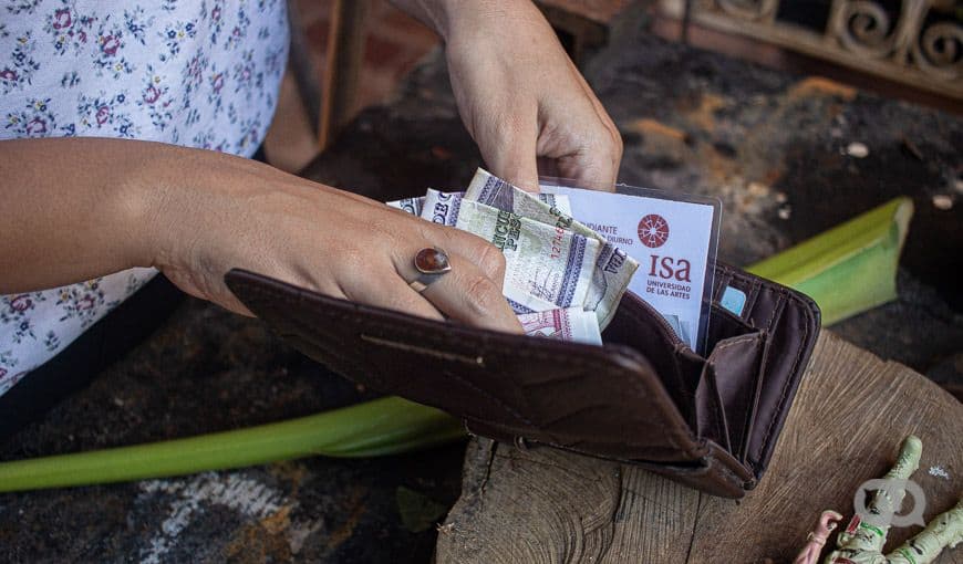Esta asistente de producción recién había cobrado. Guarda un candado pequeño en su monedero. «Así no se me va el dinero». Foto: Yaritza Guirado Alejo.