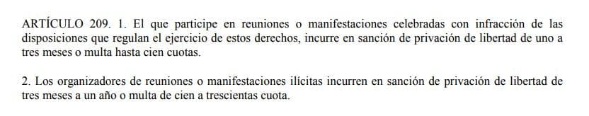 Aunque lo que parece estar en discusión es el derecho de los acusados a manifestarse de manera pacífica, a ninguno se le ha imputado el delito de manifestaciones ilícitas, el cual está previsto y es sancionado a través del Artículo 209 del Código Penal cubano.