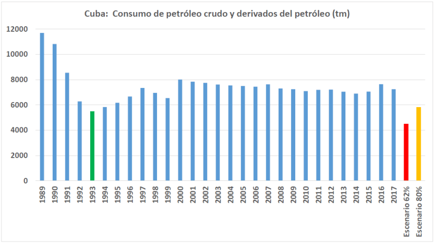 Afirmar que intenta funcionarse con niveles de consumo de combustibles ubicados entre el 62% y el 80% del consumo “normal”, significa que habría que funcionar con los niveles de consumo de combustibles del peor momento del Período Especial. Existe ahí un tema para analizar.