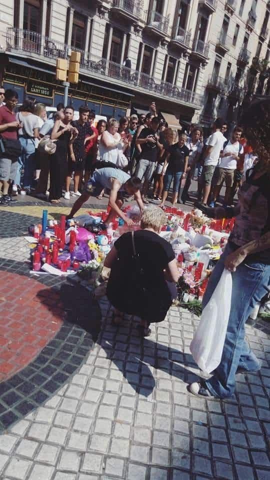 “Ahora mismo iré bajando por La Rambla camino a la playa. Por supuesto, más tarde, cuando esté por el lugar del hecho, sentiré rabia e impotencia. En general la gente está dolida, imagínate, pero hoy, con amenaza o sin amenaza, todo el mundo está dejando su flor en La Rambla”.