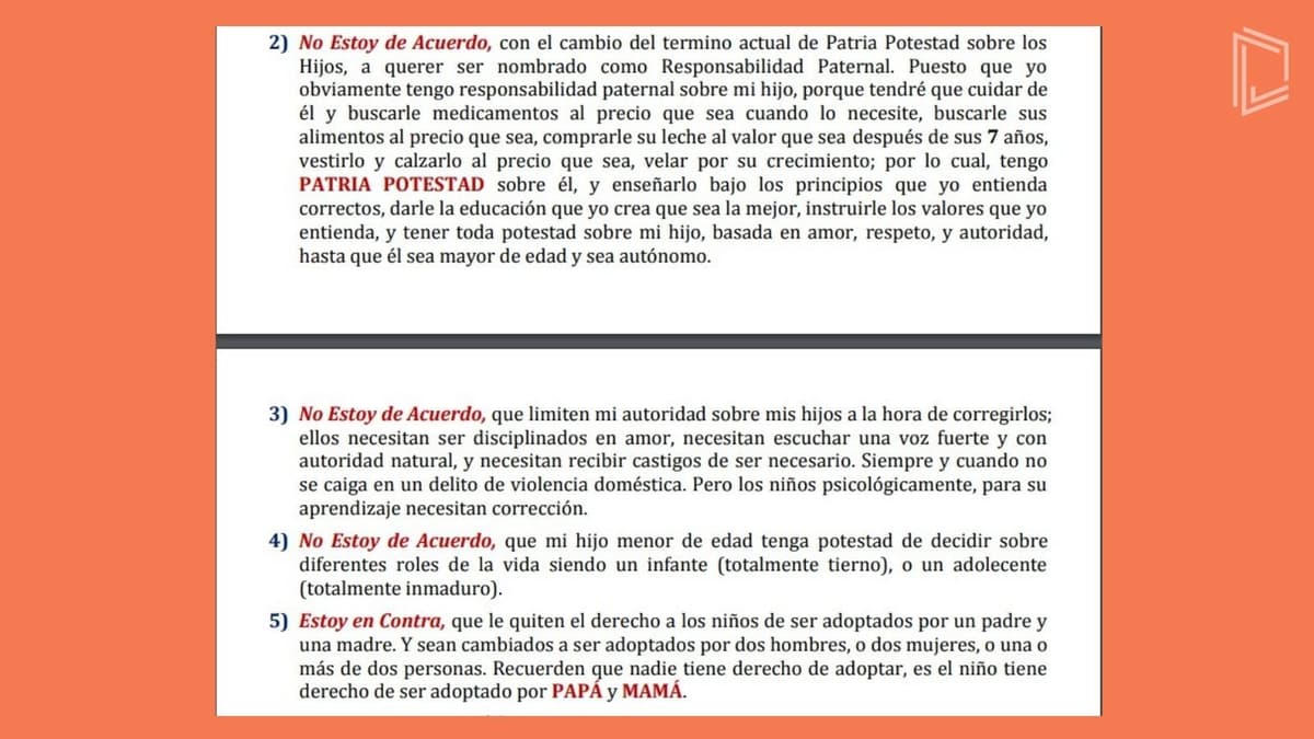 Entre otras ideas, los contenidos manipulados difunden que la eliminación del nombre jurídico patria potestad en el documento actual se traduce en: