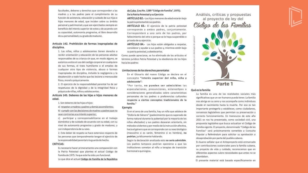Después del primero de febrero de 2022, fecha en que dio inicio la consulta popular sobre el anteproyecto de ley del Código de las Familias en Cuba, han circulado en redes sociales numerosas desinformaciones relacionadas con su contenido. Las más recurrentes son relativas al matrimonio igualitario, la adopción y la patria potestad.