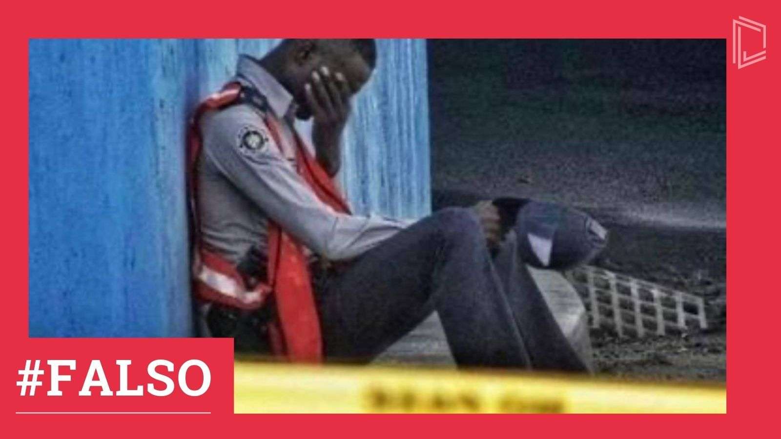 FALSO: Fotografía de un policía obligado a reprimir protestas
