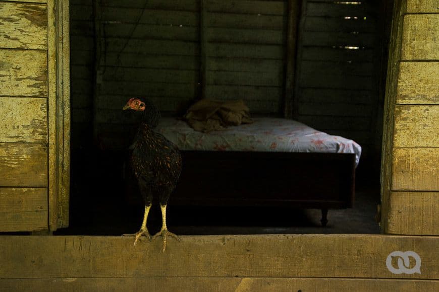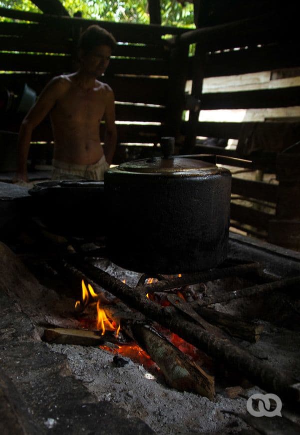 Sin decir muchas palabras nos invita a pasar a su finca «porque dejó agua calentando para pelar un pollo». Con frases entrecortadas y una extraña dicción, nos cuenta que hacía más de un año que nadie nuevo subía a La Paila, que él no baja desde hace más de cinco meses, y que no le interesa bajar. «Allá afuera hay mucho ruido, mucho gentío. Eso a uno no le gusta, porque te vuelve loco». Como quien evita la conversación, nos anima a coger guayabas y se va junto a su fogón de leña, por 20 minutos.