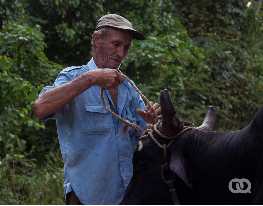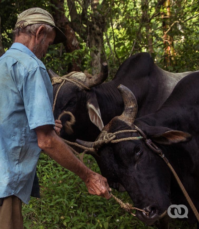 Con temor llegamos a un bohío donde un señor flacucho, con ropa sucia y rostro de niño viejo, enyuga un buey que parecía un elefante frente a aquel enclenque. Manipulaba a la bestia como si se tratara de una figura de papel.
