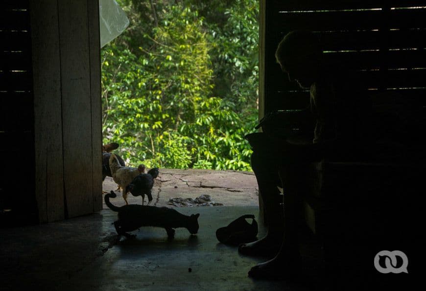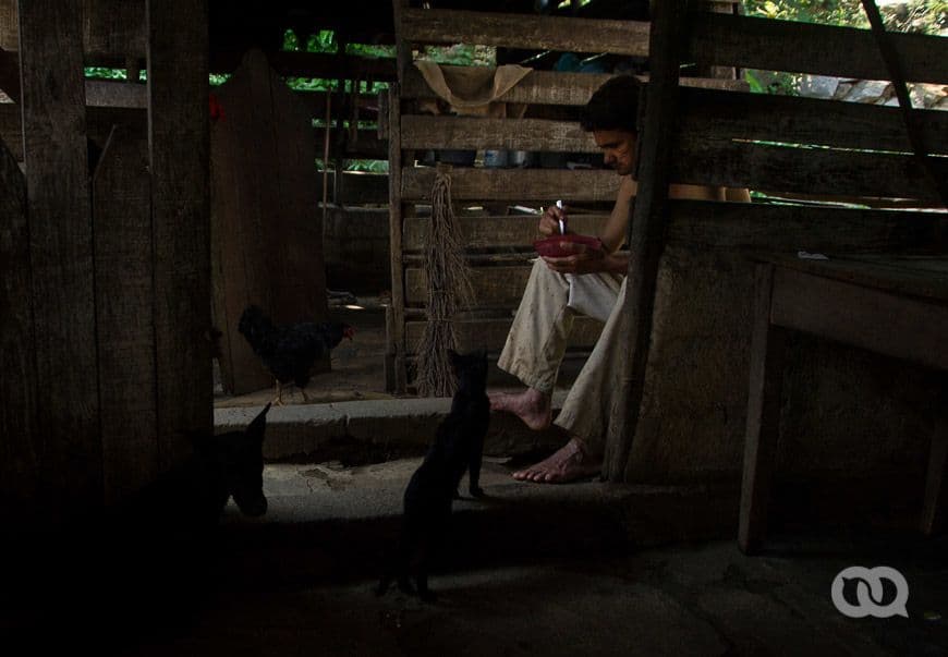 Volví varias veces a aquel sitio para comprobar que todo lo entendido detrás de estas personas no era solo impresión de un visitante emocionado. Pensé en la vida sana y tranquila en este lugar: rodeado de naturaleza; con poca gente; viviendo del trabajo de tus manos; con alimentos de primera mano y calidad, a pesar de la escasez; entre muchas otras ideas que por un momento me hicieron ver aquel paraíso del que me hablaba Elyn. Pero en mi cabeza pesaban más las expresiones de descontento de quienes, aun aclarando que no cambiarían su vida por nada, no dejaban de calificar la vida en la loma como muy difícil: cocinar con leña, andar sin zapatos por los pedraplenes, tener que ir al manantial a buscar agua, abastecimiento irregular en la bodega…
