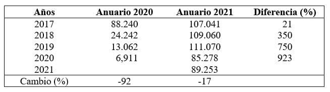 Cuadro 3. Importación de medicamentos en 2017-2021 según Anuarios de 2020 y 2021 (miles de dólares)