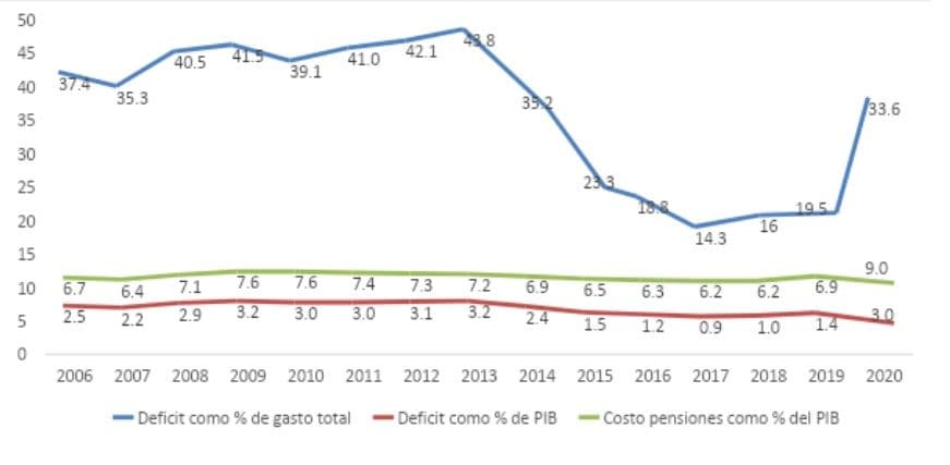 Gráfico 3. Déficit de las pensiones de seguridad social, 2006-2020