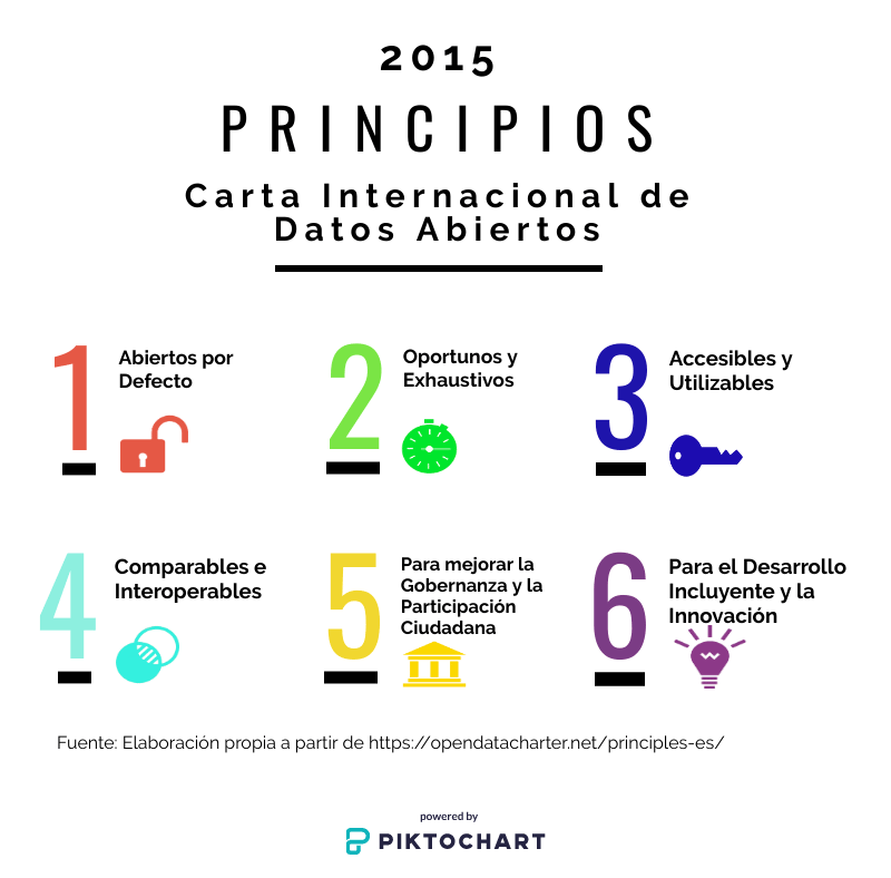 Uno de los principios que garantiza el ejercicio del derecho de acceso a la información está asociado a los formatos de presentación de los datos. De acuerdo con la Comisión Económica para América Latina y el Caribe (CEPAL), la idea de los datos abiertos se sustenta en la posibilidad de “poder acceder, utilizar y volver a publicar dichos datos, sin restricciones de copyright, patentes u otros mecanismos de control o propiedad”.