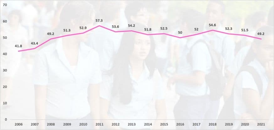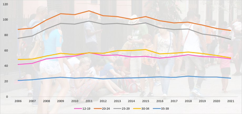 Según los datos publicados en 2022 por el Ministerio de Salud Pública de Cuba en el Anuario Demográfico, en el período entre 2006 y 2021 hubo un incremento de aproximadamente 7 adolescentes entre 12 y 19 años que tuvieron hijos por cada mil jóvenes en ese rango de edad.