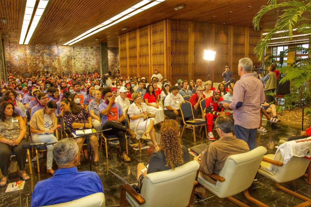 Cuban President Diez-Canel, meeting with the US delegations at the International Meeting of Solidarity with Cuba on May 1, 2023.