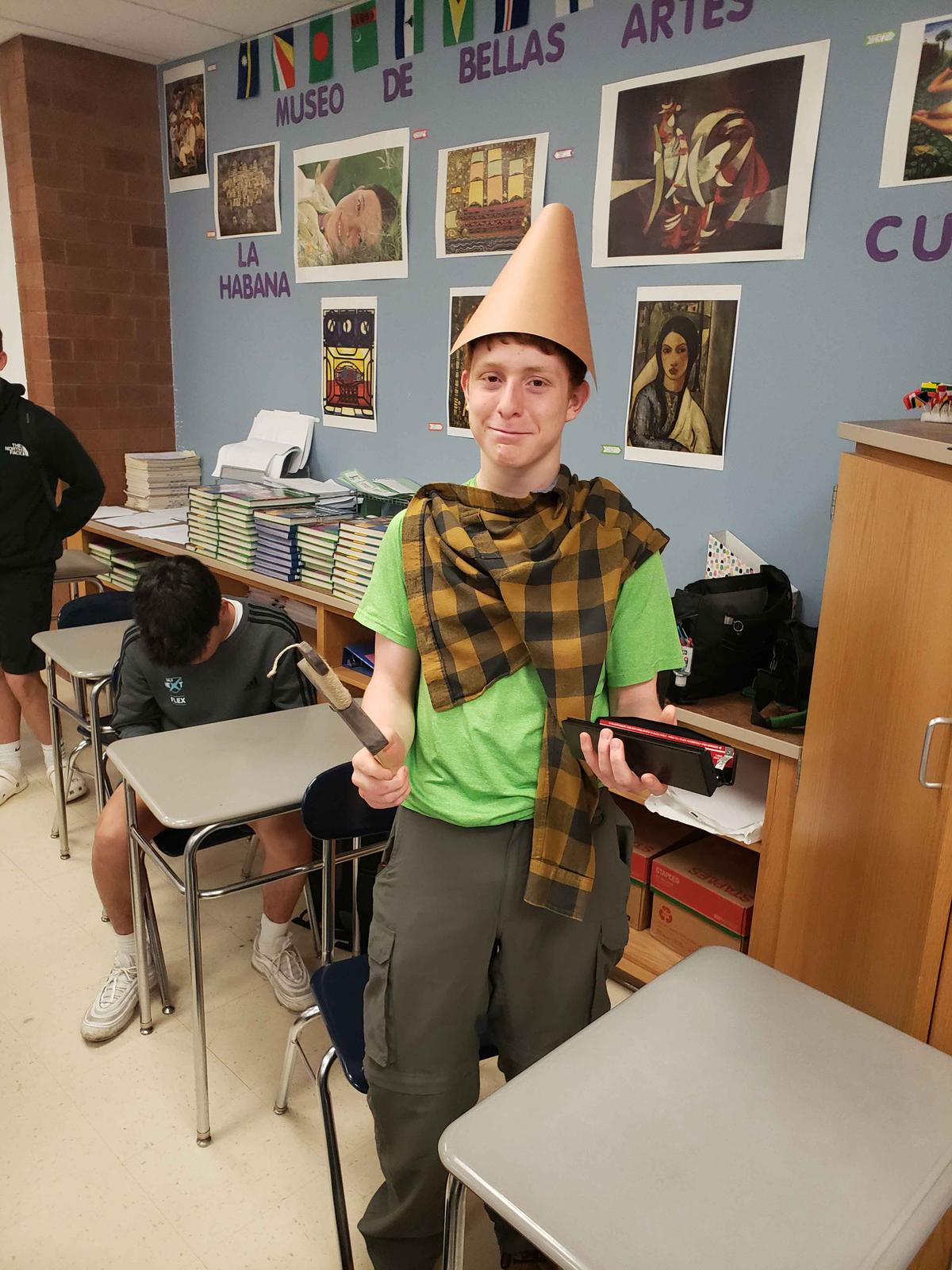 The first year, the party was limited to decorations and a piñata, because I had only 15 days to prepare it. Early in the next year, it occurred to me to introduce a costume party. The idea would be for students to come on May 20th dressed as a character from one of Marti’s stories, as in the Marti parades that children hold in Cuba. With that in mind, from the beginning of the school year I began reading the stories from La Edad de Oro in class. I think I began with “The enchanted shrimp.” The story of Loppi and especially of Masicas was so successful that I even motivated the students to take on the reading of other stories as homework.