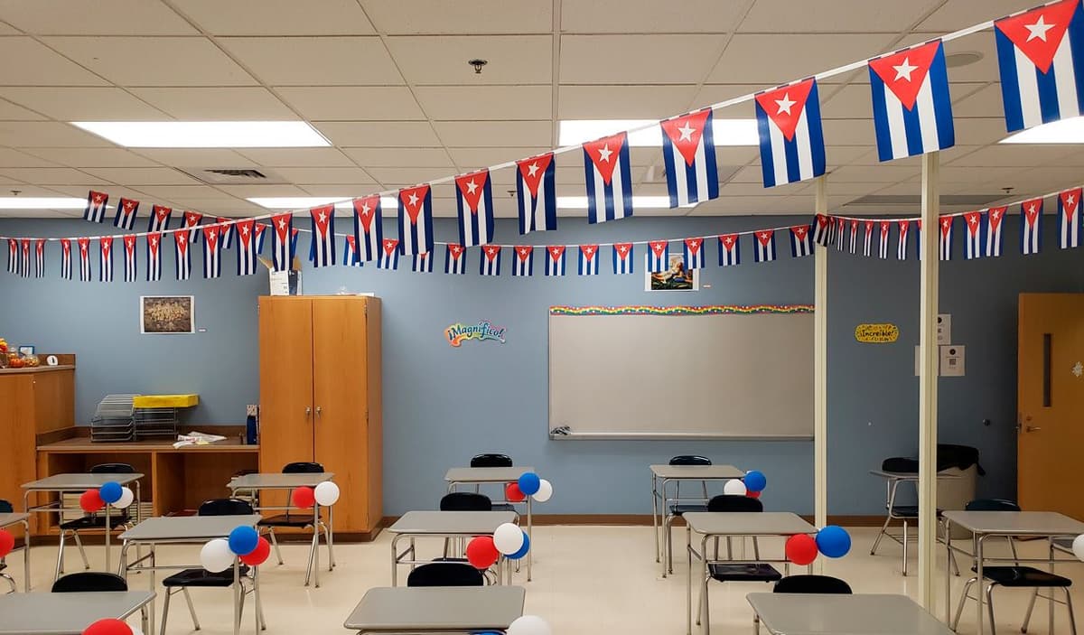 Jovann Silva’s classroom, decorated in celebration of Cuba’s original independence day on May 20. Courtesy photo from Jovann Silva.