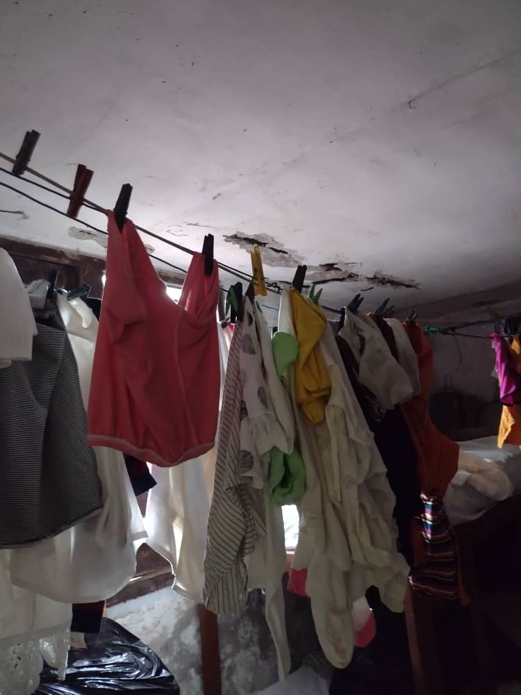 The bathroom where that single-parent family lives is closed off. A tree on one side of the property fell down and penetrated that part of the house. It also has no water. Because of that, they’re all forced to bathe in the kitchen, where the only working faucet for the precious liquid is found.