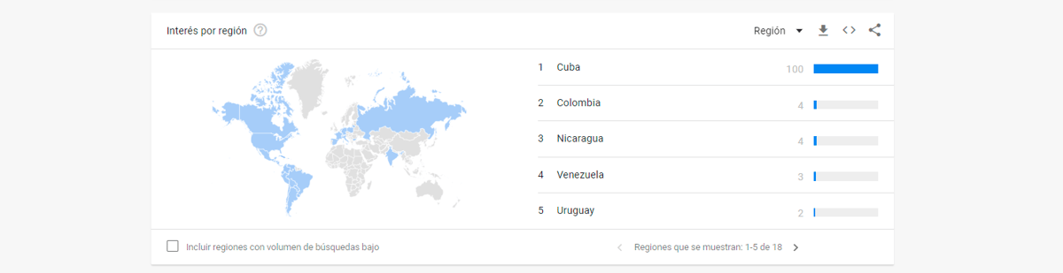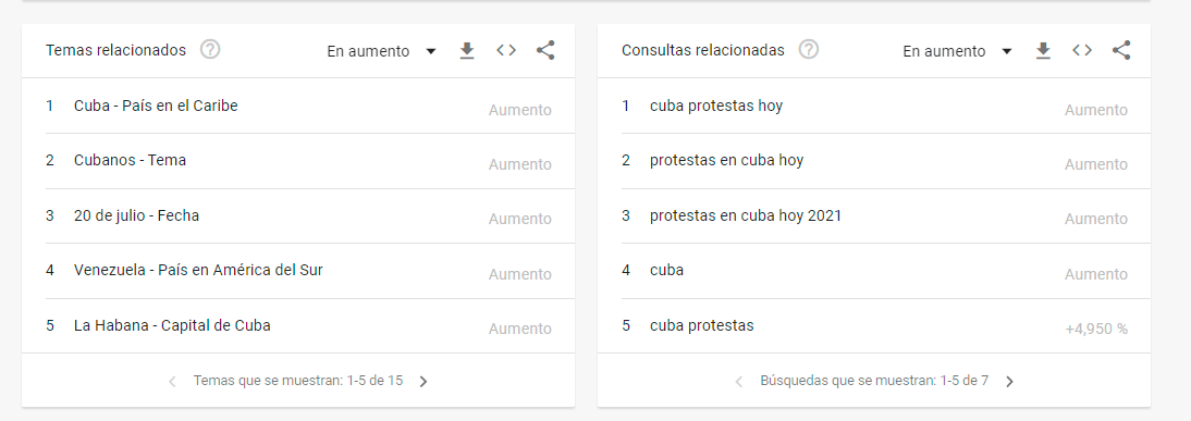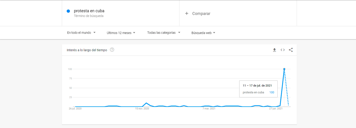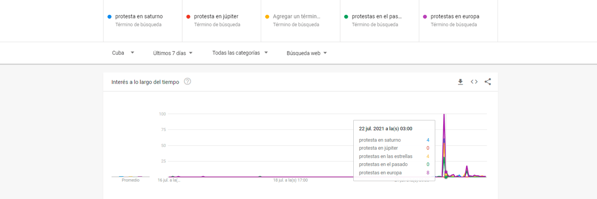 En este caso, todas las consultas de los usuarios hacían referencia a las protestas en Cuba. Y, como se puede observar, indican un aumento superior al 4 950 %.