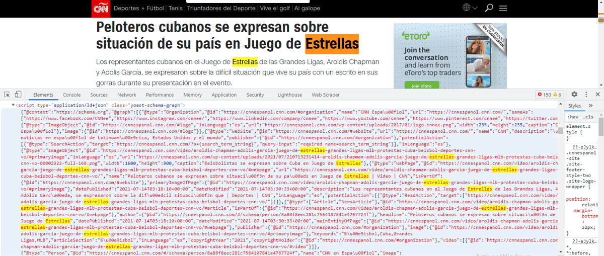 El primer resultado de la búsqueda corresponde a una publicación de CNN. No resulta sorprendente que se muestre cuando el título completo de la publicación es «Peloteros cubanos se expresan sobre situación de su país en Juego de Estrellas».