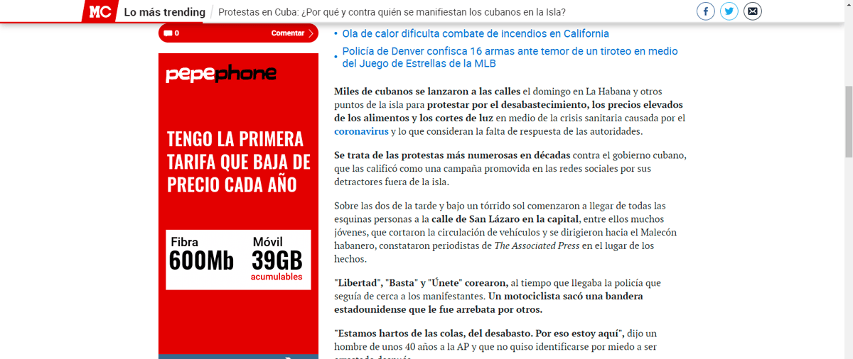 «Por estos días cualquier búsqueda que incluya la palabra protesta, los motores de búsqueda la dirigen a Cuba. Por supuesto, que las primeras sugerencias de medios no son los cubanos: Granma, Juventud Rebelde, Cubadebate o la propia televisión. Las grandes maquinarias de datos redirigen a otros de “dudosa procedencia” que cuentan su verdad, su versión de los acontecimientos del 11 de julio en nuestro país».