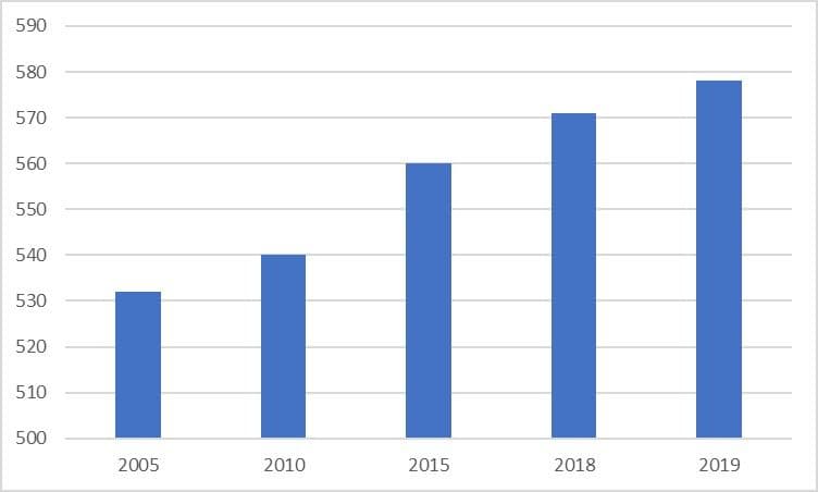 En consecuencia, existe un incremento de la relación de dependencia. ¿A cuántos ancianos y niños deben cuidar los jóvenes y adultos con edad de trabajar? En 2019 se estimaba que, por cada mil habitantes de entre 15 y 59 años, había 578 personas en edades inactivas.