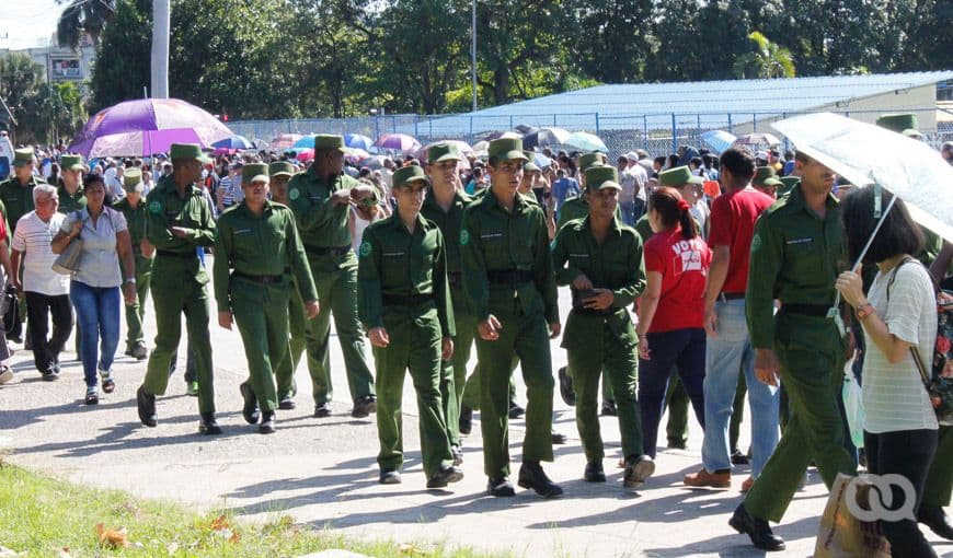 Volviendo a lo que pasó, fue a principios de mayo cuando en una sesión del Comité de los Derechos del Niño de las Naciones Unidas, Giselle González García, que es segunda secretaria de la Dirección Nacional de Asuntos multilaterales y derecho internacional del Ministerio de Relaciones Exteriores de Cuba, declaró en Naciones Unidas esto que voy a citar: “Es clara nuestra Ley de Defensa Nacional cuando refiere que los ciudadanos de ambos sexos que así lo deseen y expresen abiertamente pueden incorporarse de manera voluntaria al servicio militar”. Esto es falso. Por qué dijo esto, todavía no sabemos, pero es falso. Inmediatamente comenzaron las reacciones de cubanos que pasaron el servicio militar obligatorio preguntándose, ¿cómo es posible que una funcionaria del gobierno cubano haya dicho que no es obligatorio en Naciones Unidas?