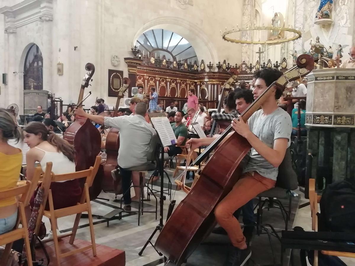 Ensayan ahora el Réquiem de Brahms. Por varias horas. Hay también músicos alemanes. Esta vez vinieron los europeos a hacer la pieza aquí; otras veces se desplazan los cubanos hacia Alemania.
