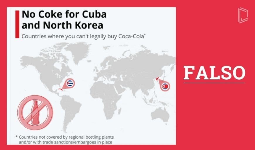 Es VERDADERO que no existen plantas embotelladoras de la bebida desde que fueron nacionalizadas las existentes tras el triunfo revolucionario; tampoco puede importarse directamente desde Estados Unidos. Sin embargo, es FALSO que no pueda comprarse de forma legal esta bebida en las tiendas de Cuba.