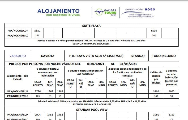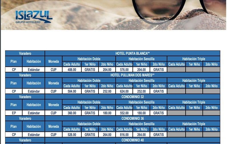 Las ofertas hoteleras en MLC en Cuba