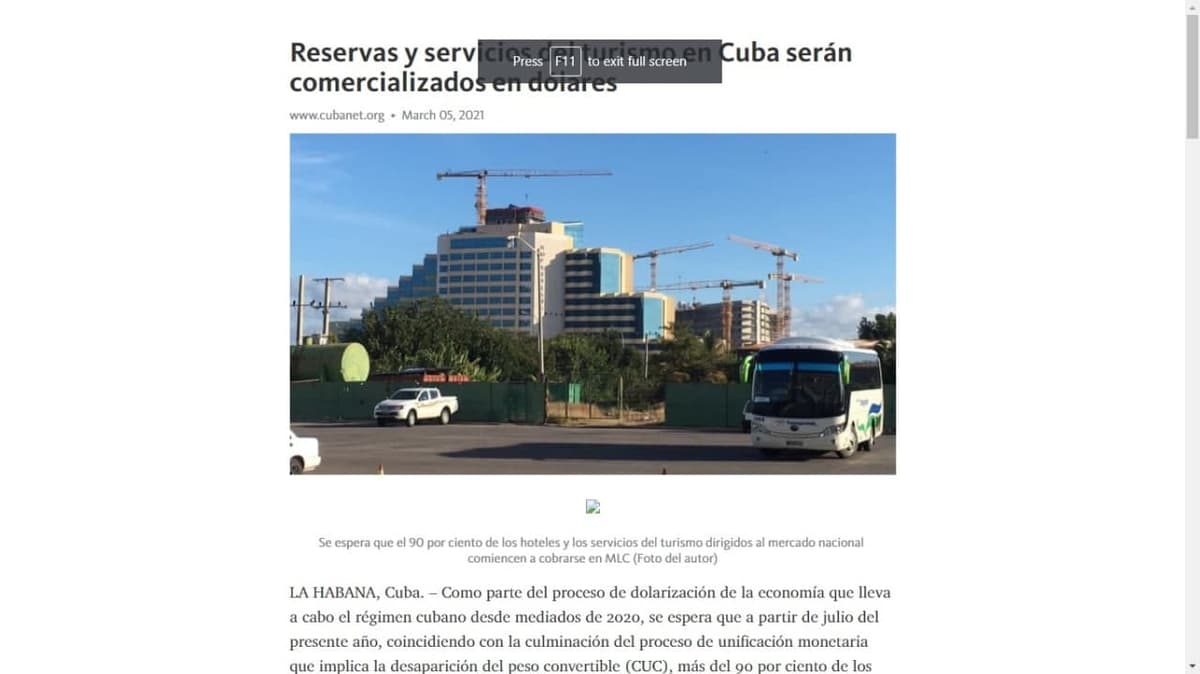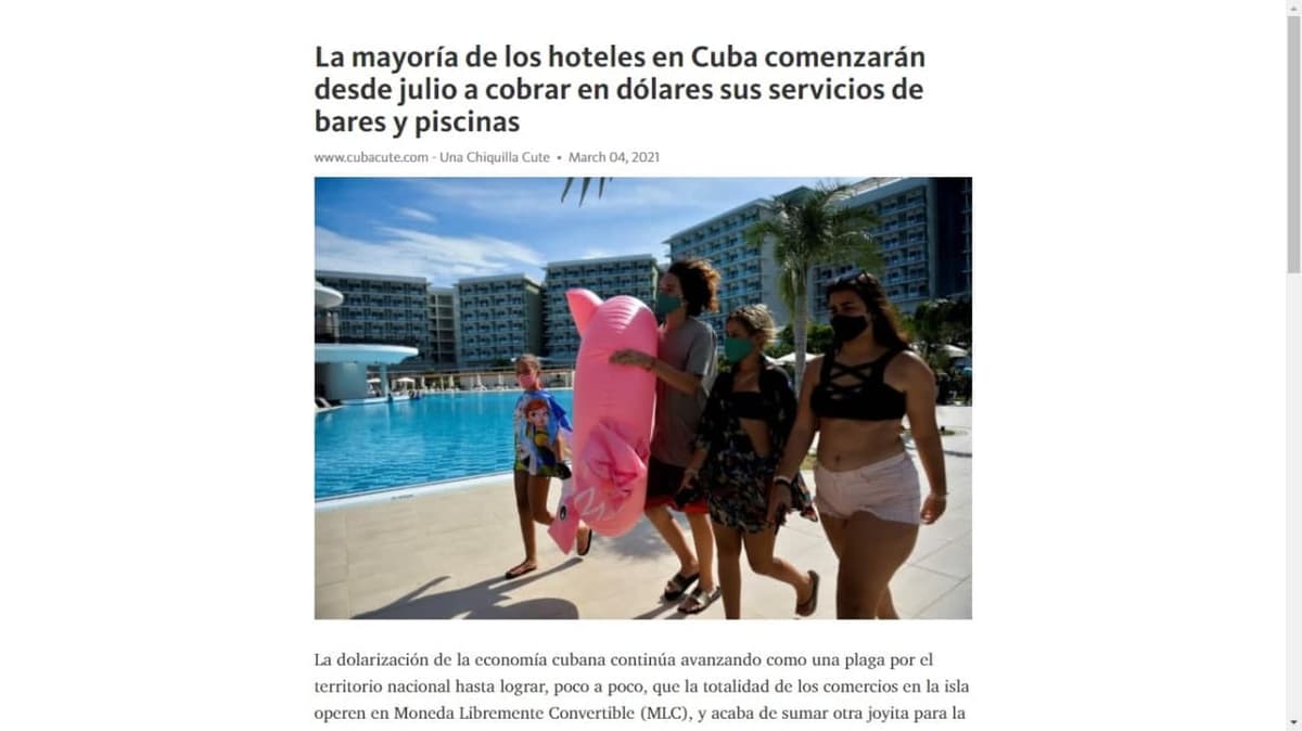 Varios medios de prensa digitales han anunciado que a partir de julio de 2021 los hoteles cubanos comezarán a brindar todos sus servicios, o una parte de ellos (bares, piscinas y terrazas), solo en moneda libremente convertible (MLC). Esta noticia es falsa.