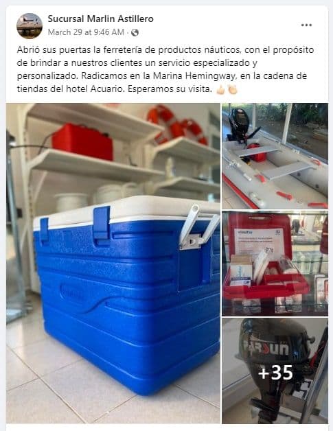 El 29 de marzo el taller náutico Marlin Astillero, perteneciente a la Empresa de Marinas y Náuticas Marlin S. A., hizo una publicación en Facebook sobre la apertura de su ferretería. Mostraron fotografías de neveras, baterías, sogas, mangueras, chalecos salvavidas, entre otros; pero la mayor controversia la provocó un motor marino y una pequeña lancha. A partir de eso, se hizo popular la supuesta venta de lanchas en la tienda. Esto es FALSO.
