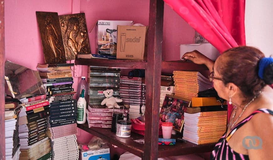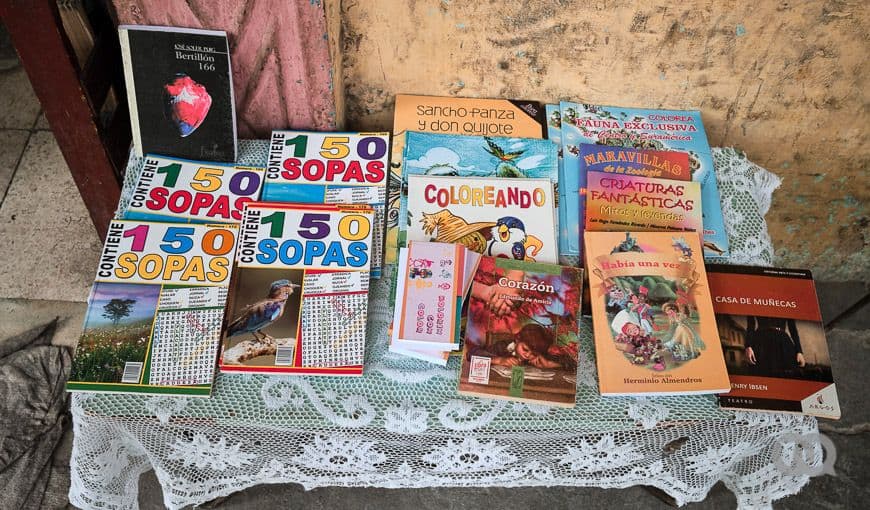 La segunda vez que fui a verla, las estanterías que había visto apoyadas en la pared de afuera, ya no estaban. La policía le prohibió sacar la mercancía y quiso multarla con una suma exorbitante. Felicia les rogó y consiguió rebajarla a 100 pesos. En este momento en que las ventas han bajado por la crisis y la falta de turismo, tener que pagar 2000 pesos de multa implica un golpe fuerte para alguien como Felicia. “La gente no tiene dinero para comprar libros”, dice resignada.