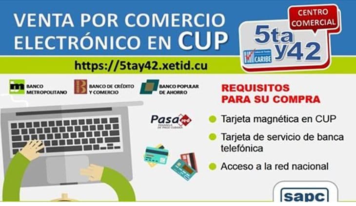 Por otro lado, desde el 12 de diciembre de 2018 y después de un período de pruebas desde el verano, la Cadena de Tiendas Caribe puso a disposición del público el servicio de compras electrónicas en el Centro Comercial 5ta y 42 en La Habana. Por el momento solo se pueden adquirir algunos productos en CUP.