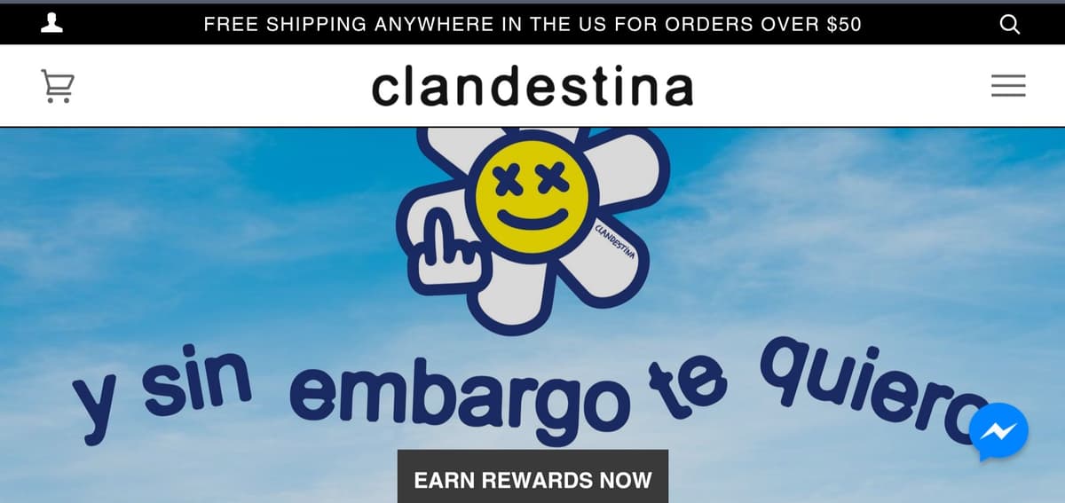 Captura de pantalla de la portada de la tienda online de Clandestina