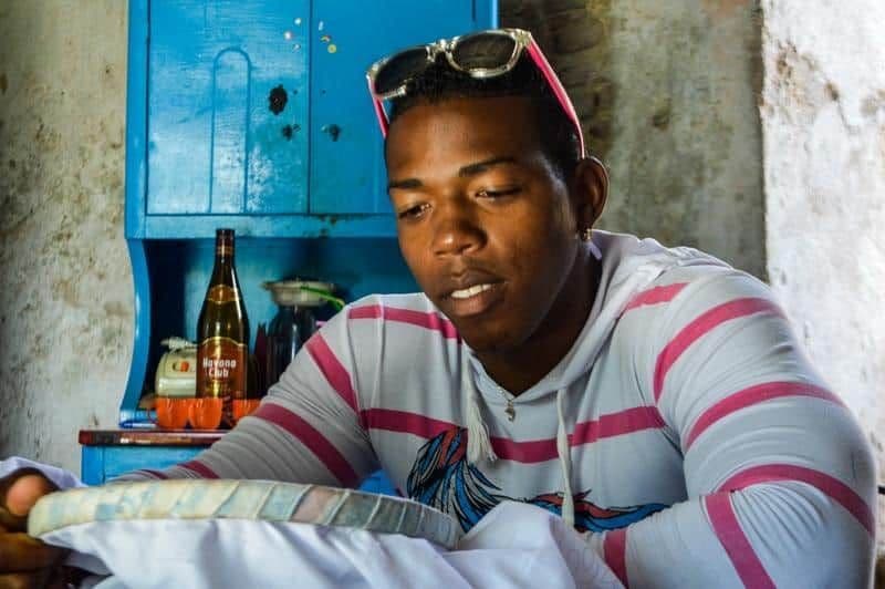 —Un poco. Pero el tiempo me dio confianza, total, aquí ya se ha vuelto normal. Se pueden ver hombres que les encanta bordar en la calle, cuando en otro lugar de Cuba los mirarían con cara de espanto. A los turistas les llama la atención, les resulta gracioso.