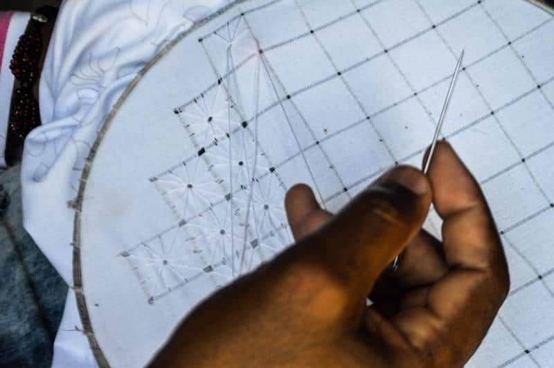 Para el artesano extraoficial es mejor trabajar por partes. El que compra la tela pide le hagan el deshilado para luego realizar la randa. Una tercera persona le facilita el bordado. Finalmente, vendedores de la Candonga (la feria artesanal de Trinidad) esperan por estas prendas. En cada escala media dinero.