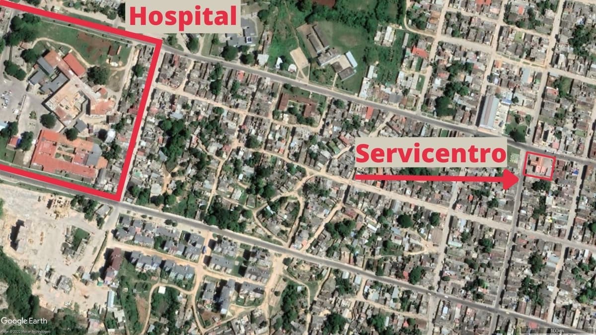 Según las fotos del área publicadas en la página de Facebook del Hospital y las imágenes de la televisión, se nota la distancia entre el muro que delimita la institución sanitaria y la zona de atención médica. Esta puede ser la causa de que, en caso de la veracidad de los hechos, no existieran daños materiales.